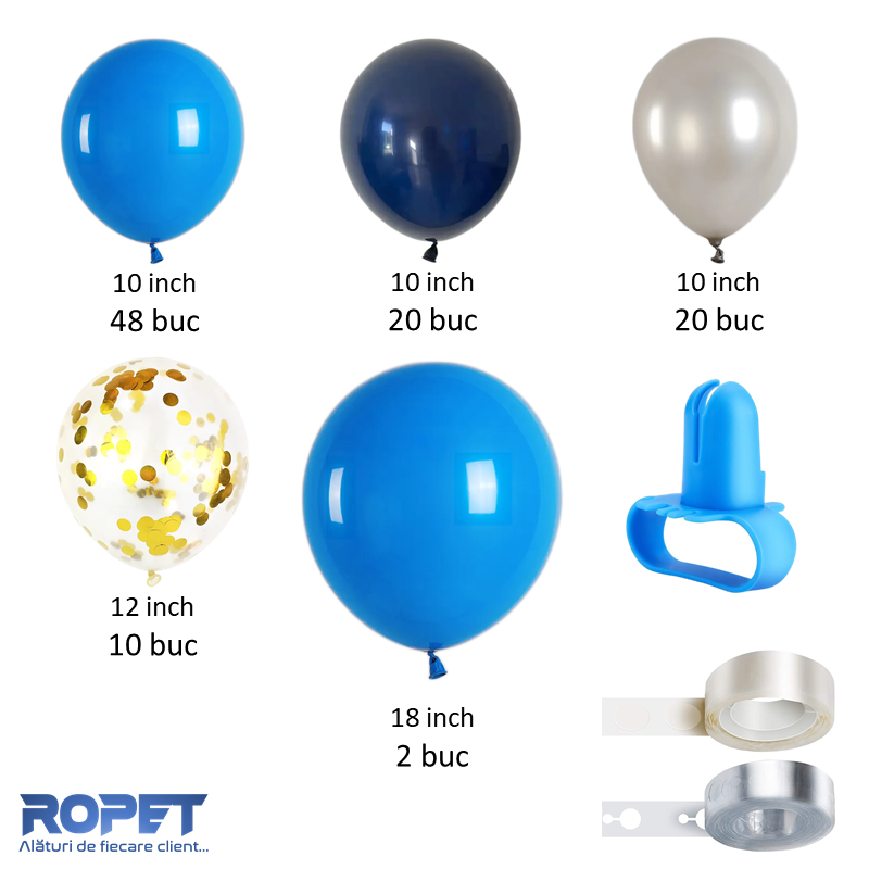 Set aranjament baloane pentru arcada, 150 buc, albastru si negru