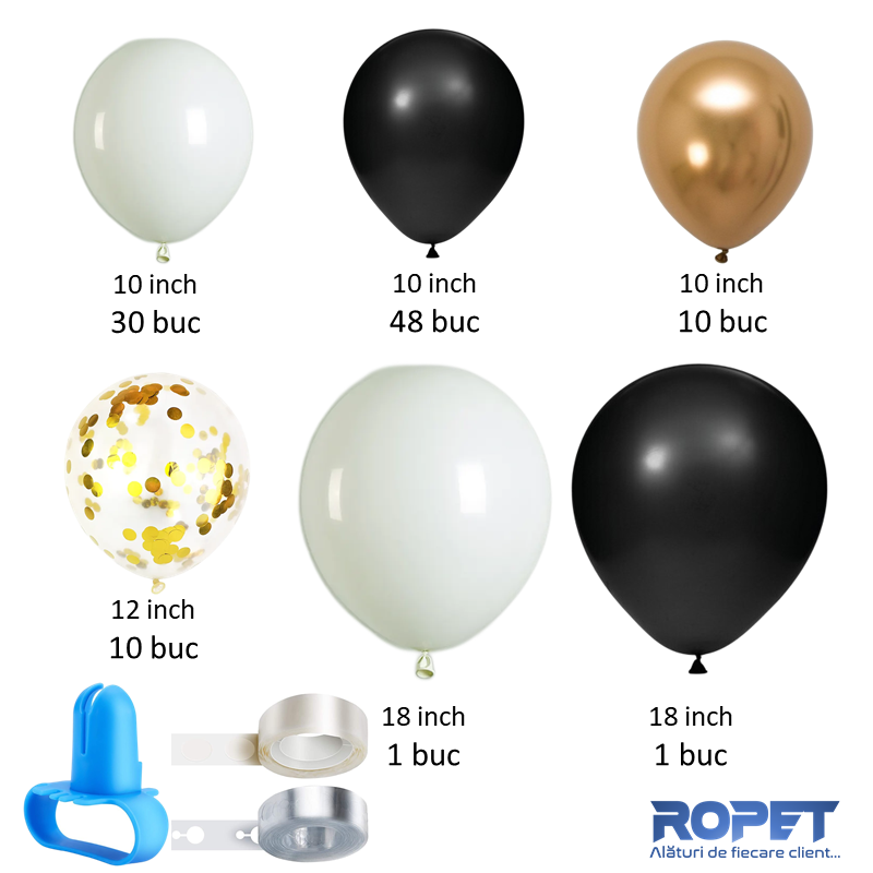 Set aranjament baloane pentru arcada, 150 buc, negru, galben si argintiu