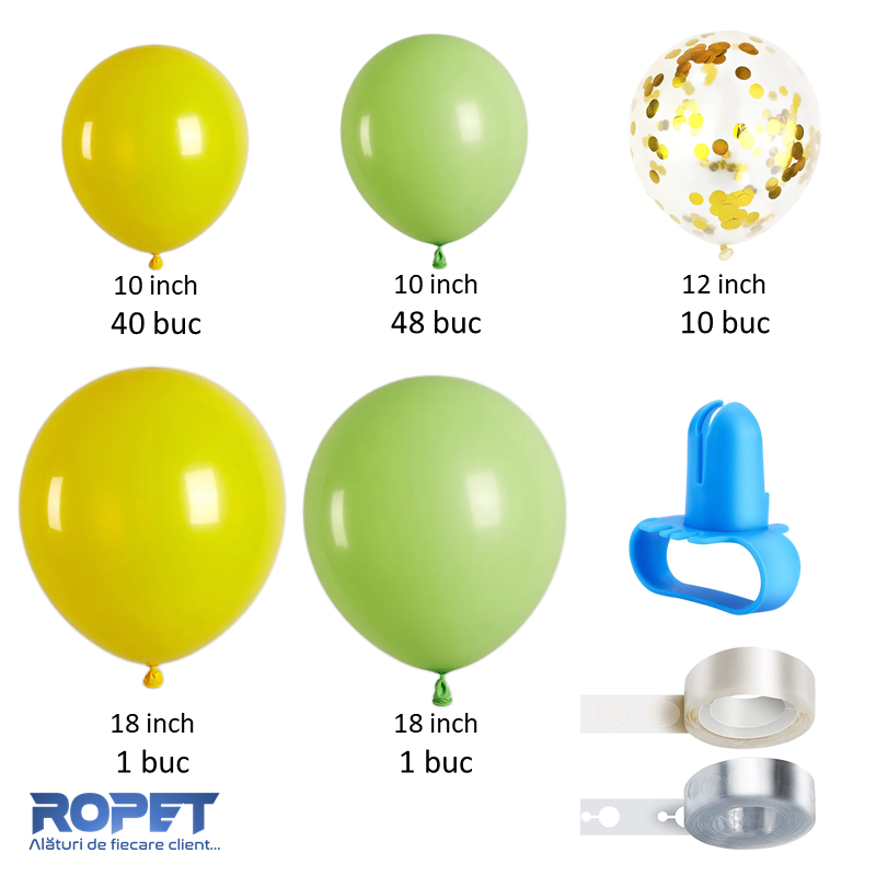 Set aranjament baloane pentru arcada, 150 buc, galben si albastru